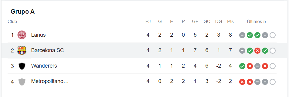 Así está Barcelona la tabla de posiciones del torneo ecuatoriano de fútbol: