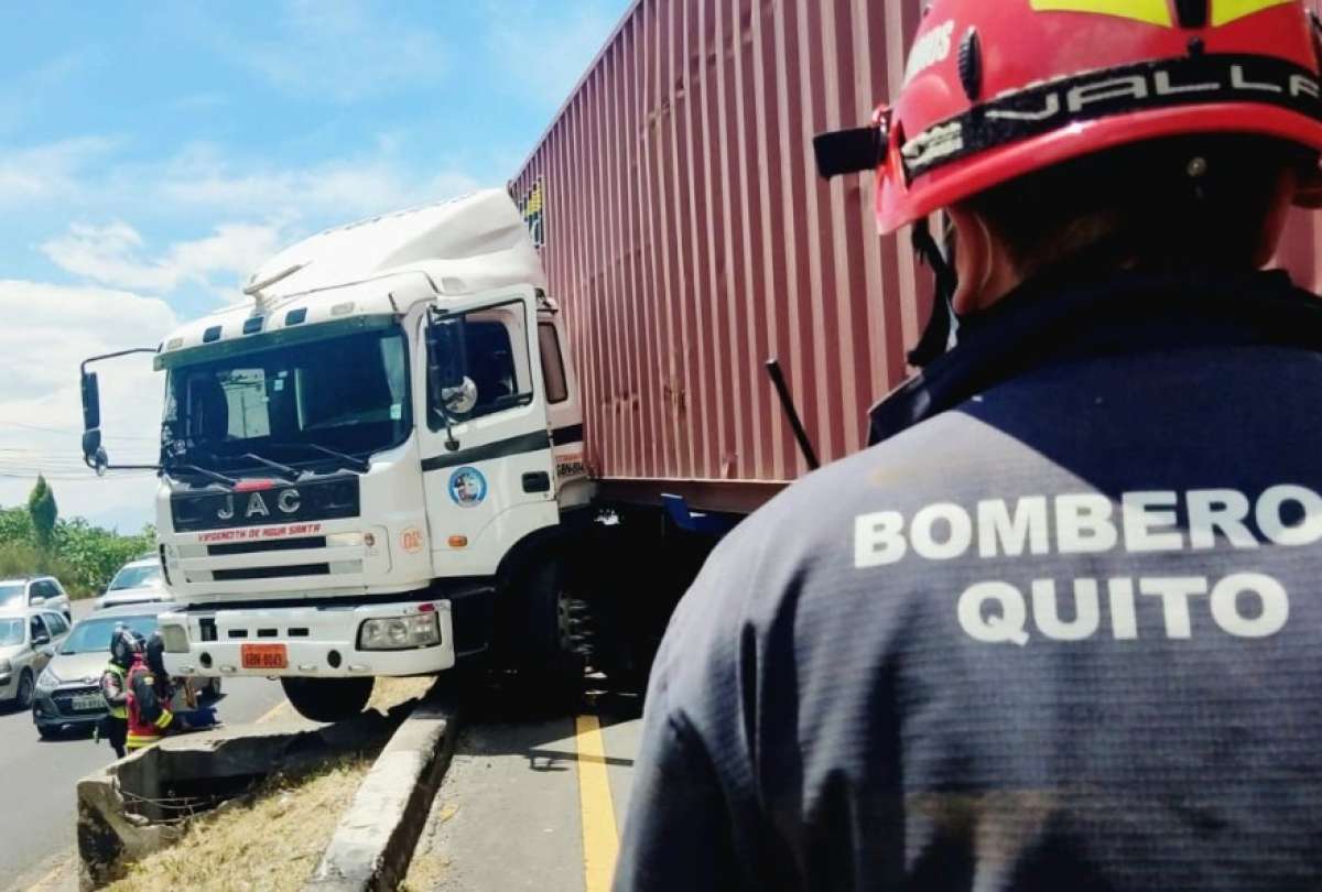 El Cuerpo de Bomberos de Quito rescató a cuatro personas por un accidente ocurrido en la avenida Simón Bolívar.