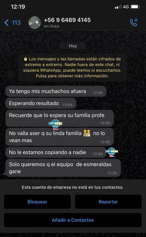En redes sociales se comenzó a compartir un supuesto chat en el que amenazan al director técnico ecuatoriano, Geovanny Cumbicus, previo al partido que disputará su equipo el Mushuk Runa ante Vargas Torres en Esmeraldas este miércoles a las 15:00 por la Copa Ecuador.