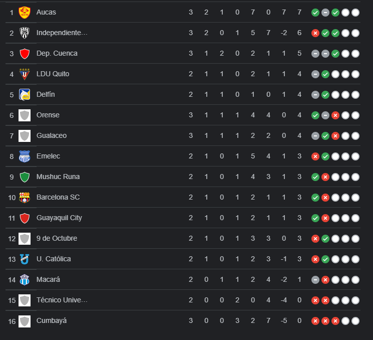 Para la próxima fecha, el Aucas se visitará al Deportivo Cuenca, mientras que el Independiente del Valle recibirá al Barcelona S.C.