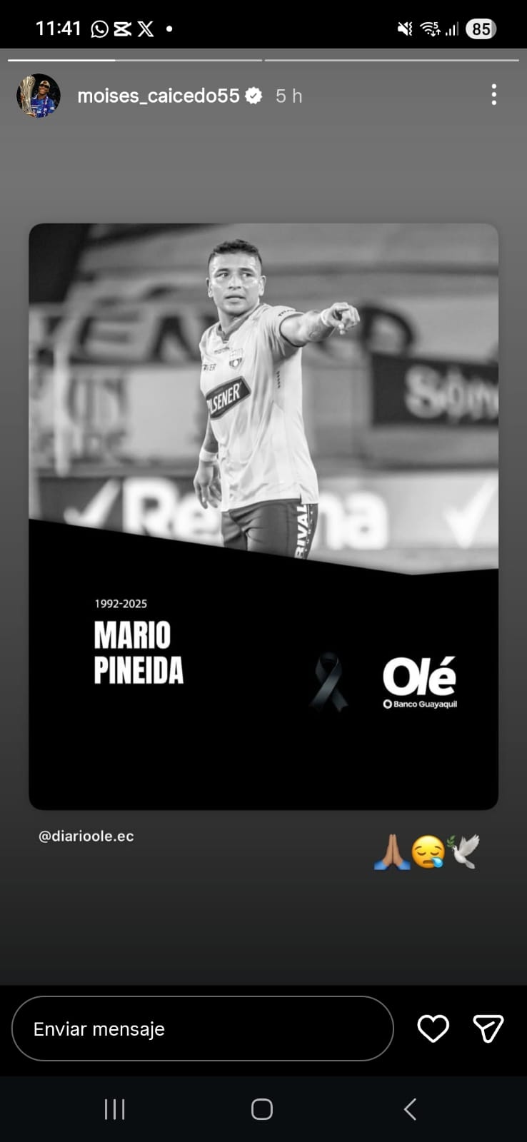 Desde el fútbol internacional, Nicolás Ramírez, excompañero en Barcelona SC y actualmente en el fútbol chileno, compartió una fotografía en blanco y negro con el mensaje “Descansa en paz, Marito”. A este homenaje se sumó Moisés Caicedo, jugador del Chelsea, quien publicó la misma imagen acompañada de un corazón roto. Ariel Nahuelpán también expresó su dolor al recordar los momentos compartidos: “Tantas concentraciones juntos, tantos partidos, tantas risas. Me duele esto mucho”.