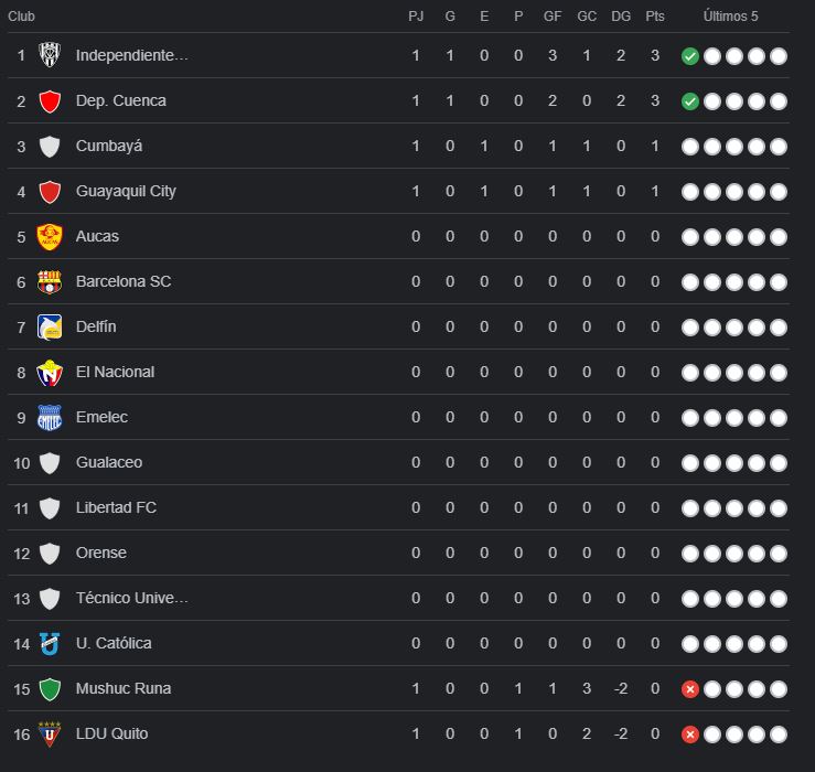 Jugados tres partidos de la LigaPro 2023 así queda la tabla de posiciones: