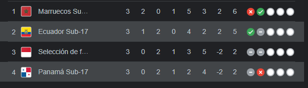 La selección ecuatoriana de fútbol, Sub 17, clasificó a octavos de final del Mundial de esa categoría tras empatar con su similar de Panamá a un gol por bando. El partido desarrollado en el estadio Manahan tuvo a uno centroamericanos que arremetieron desde arrancado el partido con la intención de adelantarse en el marcador y se encontraron con un Ecuador que supo manejar sus tiempos.