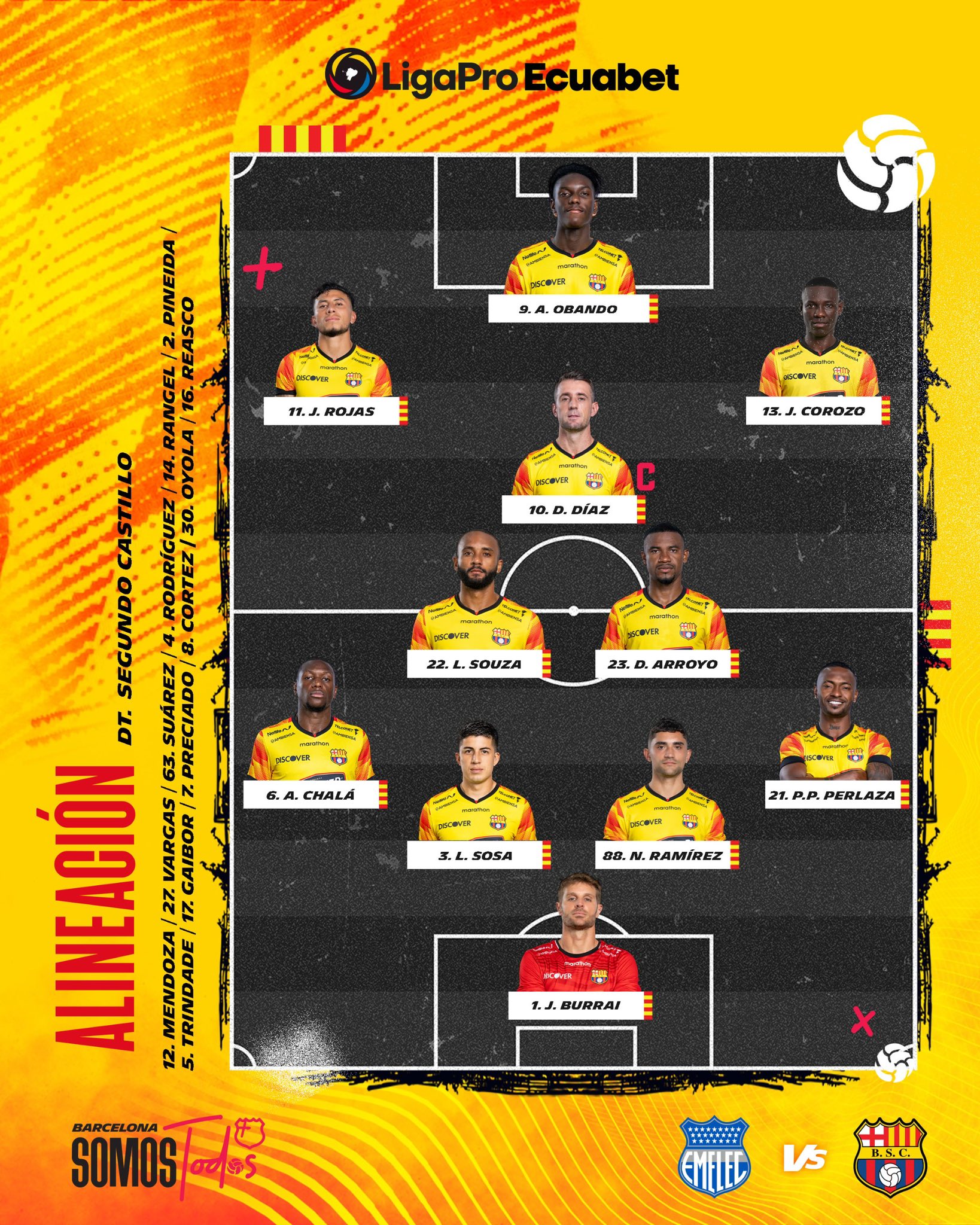 Las alineaciones están listas. Desde las 18:00 de este 28 de abril de 2024, Emelec y Barcelona se enfrentan en una nueva edición del Clásico del Astillero que se jugará en el Estadio George Capwell por la fecha 10 de la LigaPro.
