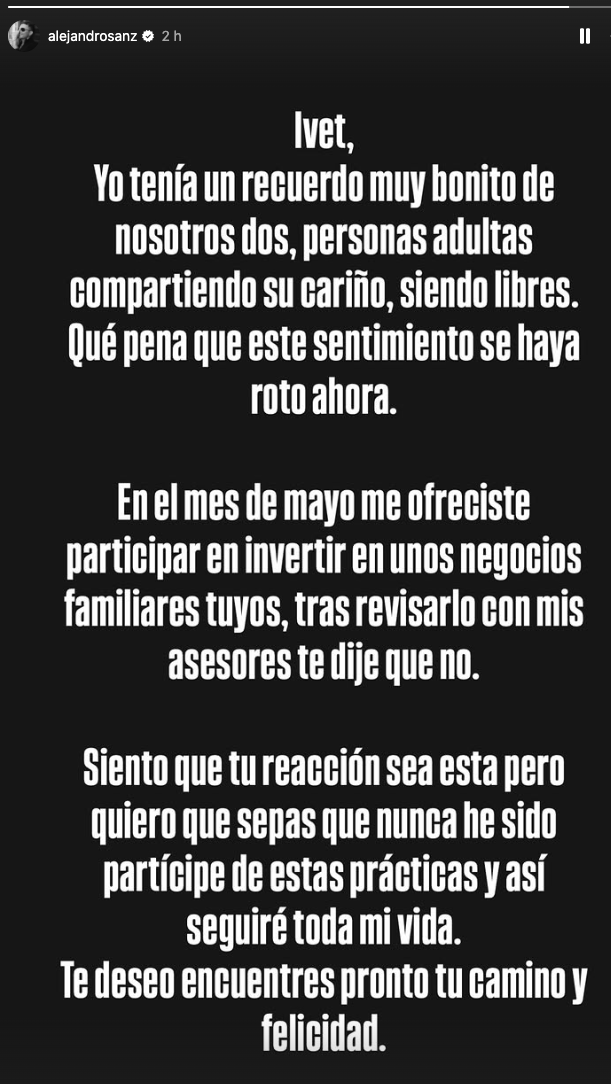 El reconocido cantante español Alejandro Sanz ha sido señalado públicamente por Ivet Playà, una joven catalana que lo acusó de abuso emocional y manipulación en una relación que comenzó cuando ella tenía 18 años y él 49. Sanz respondió a través de una historia en su cuenta de Instagram.