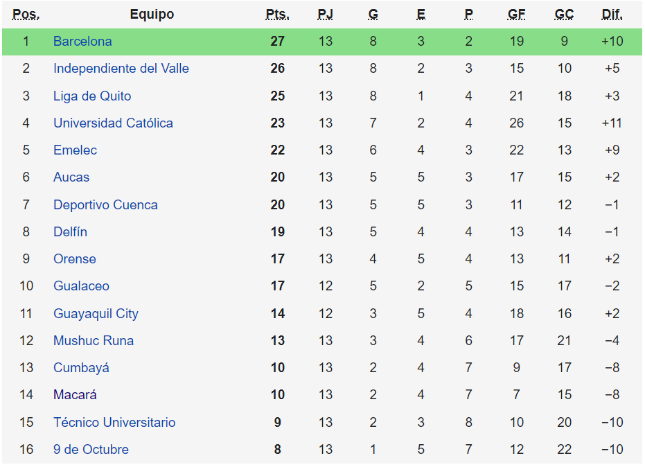 Estos resultados hicieron que la pelea por la etapa siga vigente entre los cuatro primeros de la tabla de posiciones. Entre el líder de la clasificatoria, Barcelona, y el cuarto de la tabla, Universidad Católica hay cuatro puntos de diferencia y faltan por jugarse seis.