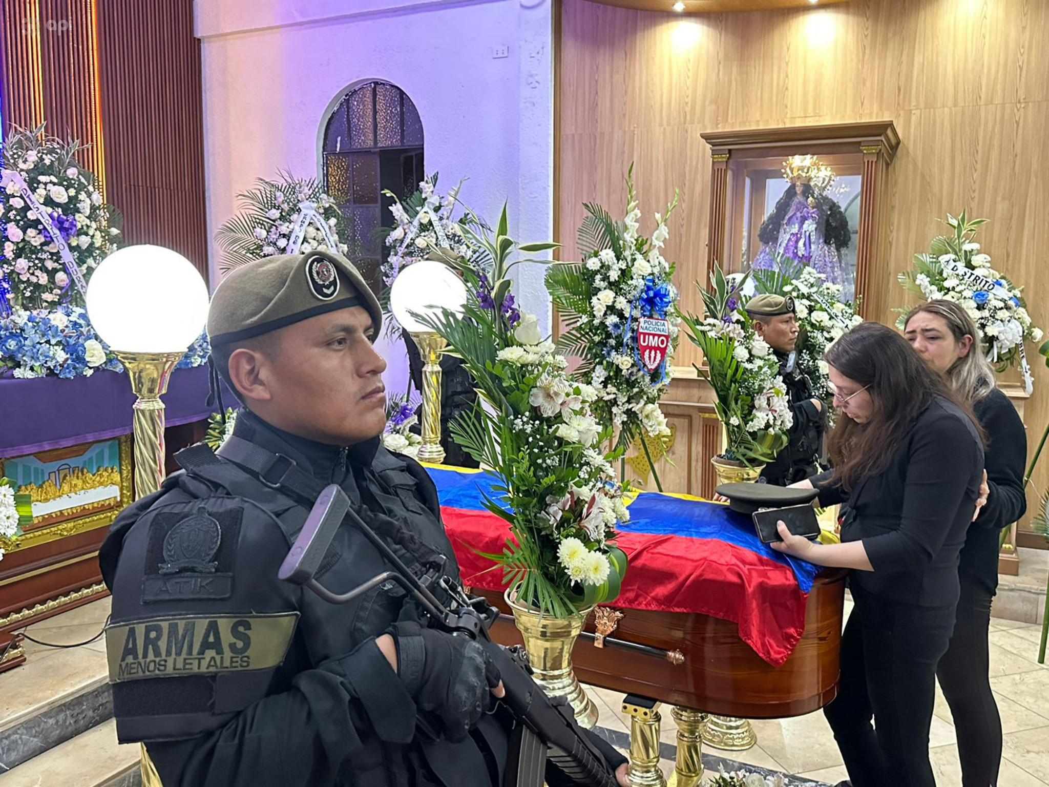 La Policía Nacional y la familia del servidor levantaron una capilla para el cuerpo de Germán Morales.