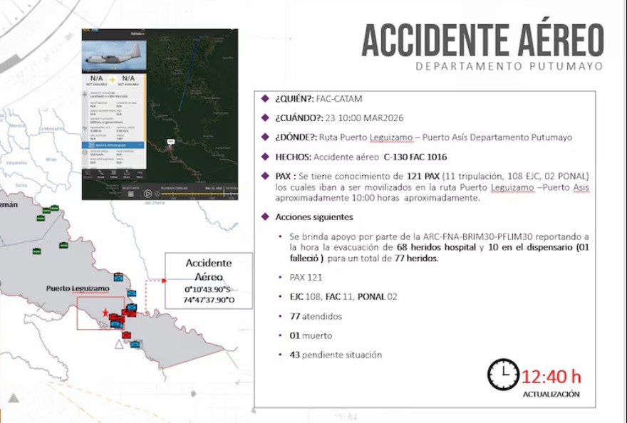 Un accidente aéreo se registró la mañana de este 23 de marzo de 2026 en el departamento de Putumayo, en Colombia.