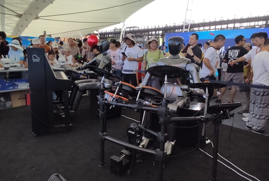 Más allá, un grupo de música metálico afinaba su piano y batería. Al son de las notas tocaron lentamente una melodía. Y muy cerca de ellos, un robot futbolista lanzaba sus mejores tiros al arco, cuyos porteros eran niños que querían jugar fútbol con él.