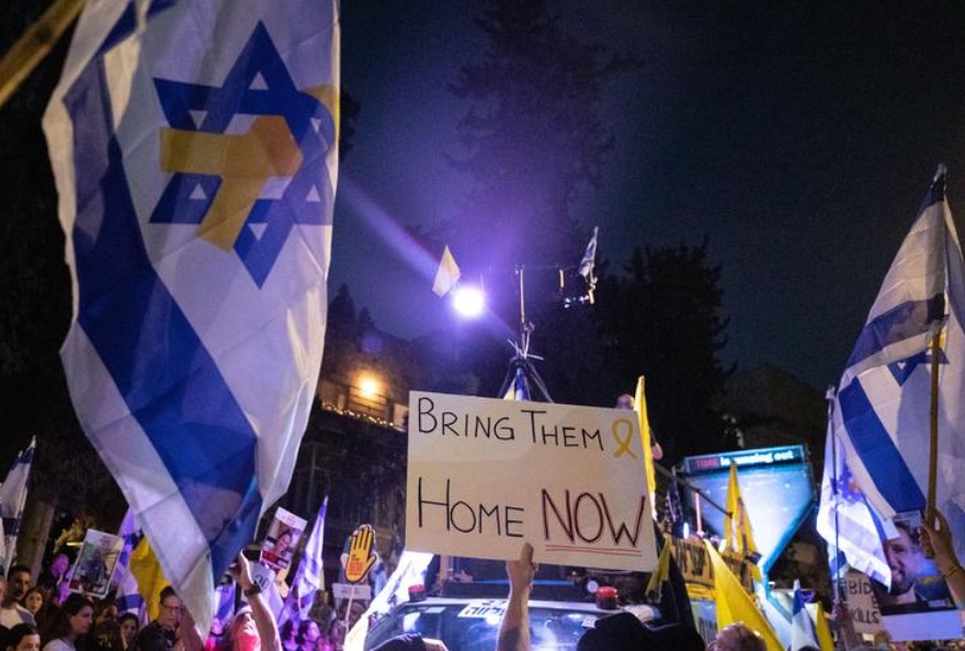 Una protesta se desarrolló en Jerusalén para pedir un alto el fuego inmediato y la liberación de los rehenes israelíes retenidos en Gaza.