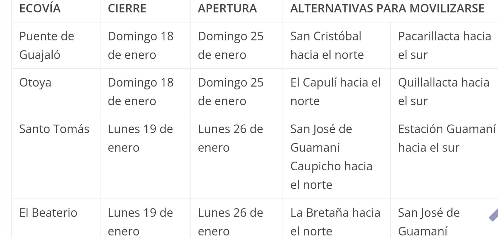 Mientras tanto, en la estación Morán Valverde y en la terminal Carcelén, donde también se ejecutan trabajos, el servicio opera con normalidad y no se han registrado cierres.