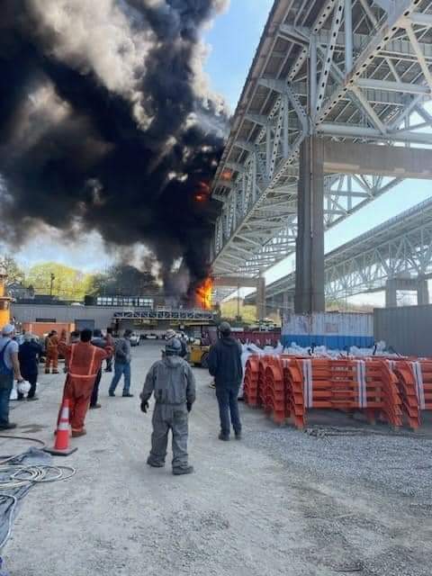 Firefighters battle a blaze on the Goldstar Memorial Highway, l- 95 south #newlondon #groton pic.twitter.com/SQdDvmiitV