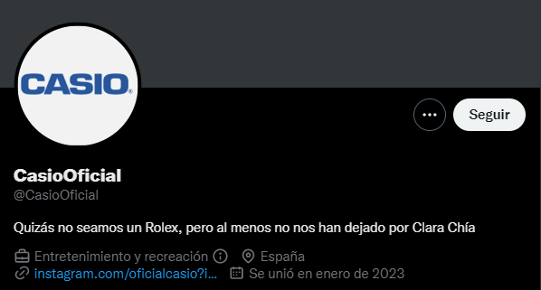 Se trata de la parte que dice: "cambiaste un Rolex por un Casio". Esto debido a que una supuesta cuenta de la red social Twitter de esta relojería, creada hace pocas horas, ‘respondió’ a la cita en la información de su biografía con: “Quizás no seamos un Rolex, pero al menos no nos han dejado por Clara Chía”.