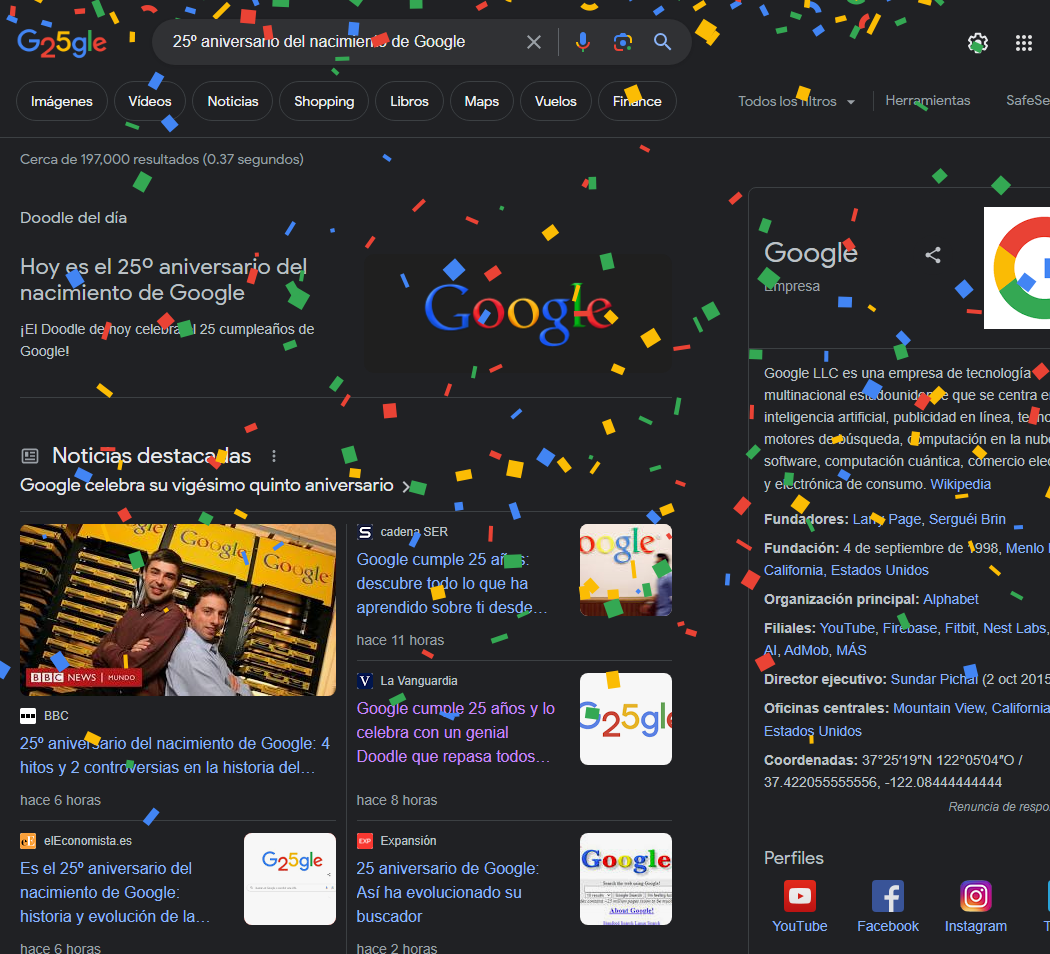 Además, si quieres ser parte de esta celebración, dando click al logo y te direccionará a una animación con confeti cayendo desde la parte superior de la pantalla.