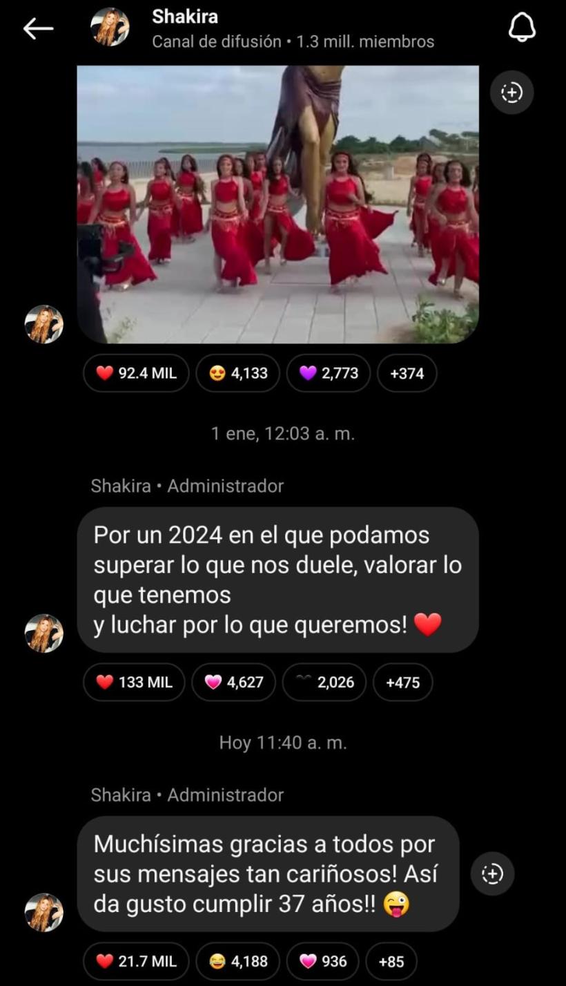 La cantante colombiana bromeó con su edad en los grupos de difusión de WhatsApp e Instagram “Muchísimas gracias a todos por sus mensajes tan cariñosos. Así da gusto cumplir 37 años”, lo dijo acompañado de un emoticón, guiñando el ojo y sacando la lengua.