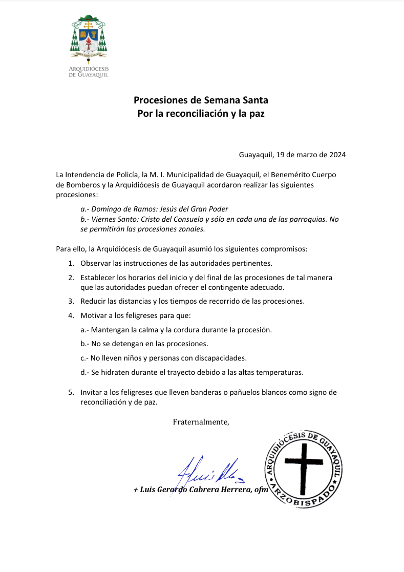 Sin embargo, desde la Diócesis de Guayaquil se hicieron varios cambios para que el evento que se realiza por Viernes Santo sea aprobado. Esta procesión será rápida.