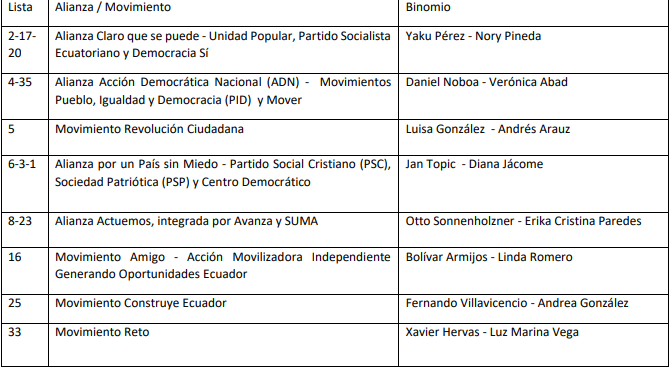 Los ocho binomios presidenciales inscritos son: