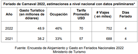 El feriado de Carnaval registró 48,9 millones de dólares en concepto de gasto turístico, según informó el Ministerio de Turismo. El balance económico demostró que en la comparativa con el año pasado, en esta ocasión hubo mayor ocupación, viajes y gastos.