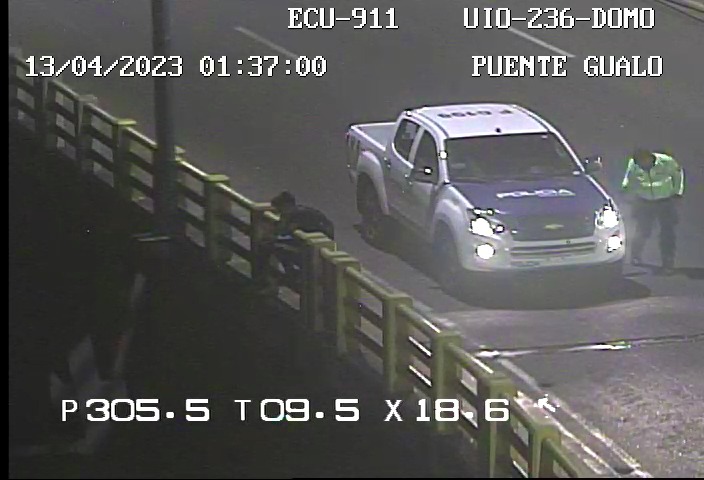 La madrugada del 13 de abril, las cámaras de videovigilancia del Servicio Integrado de Seguridad ECU 911 captaron a un joven en el puente de Gualo con una actitud inusual. El hombre estaba sentado en la estructura metálica, en una posición peligrosa, por lo que servidores policiales fueron enviados hasta el sitio.