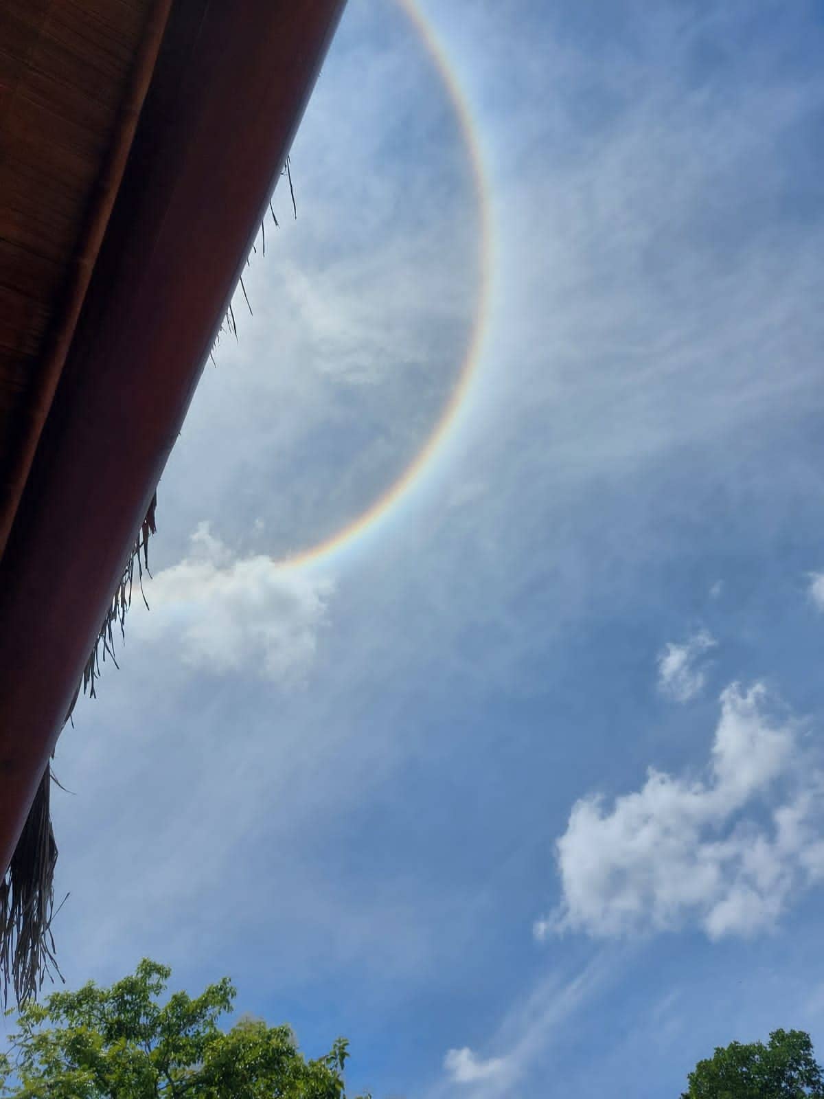 En las imágenes se puede ver una especie de arcoíris alrededor del sol, en medio de un cielo despejado.