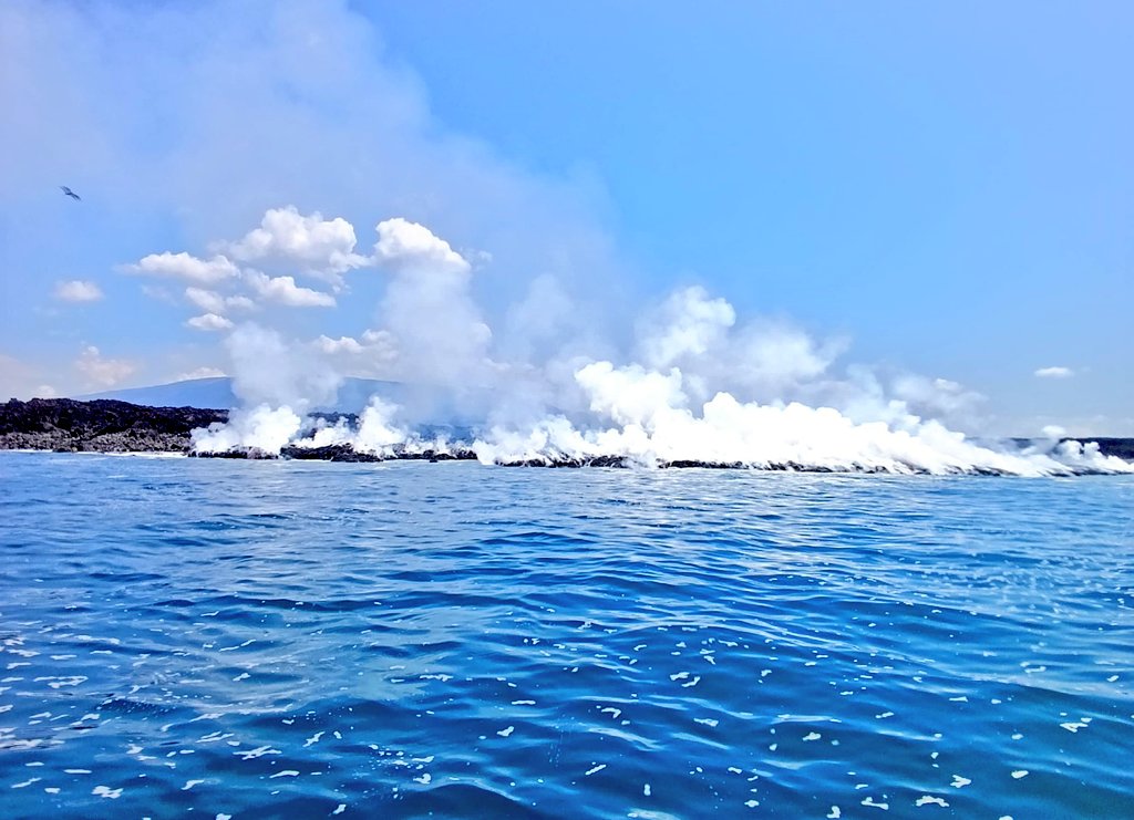 Después de 35 días de actividad moderada, pero ininterrumpida, la mañana de este domingo, 07 de abril de 2024, se reportaron flujos de lava de la erupción del volcán La Cumbre, en la isla Fernandina mismo que llegaron al mar.