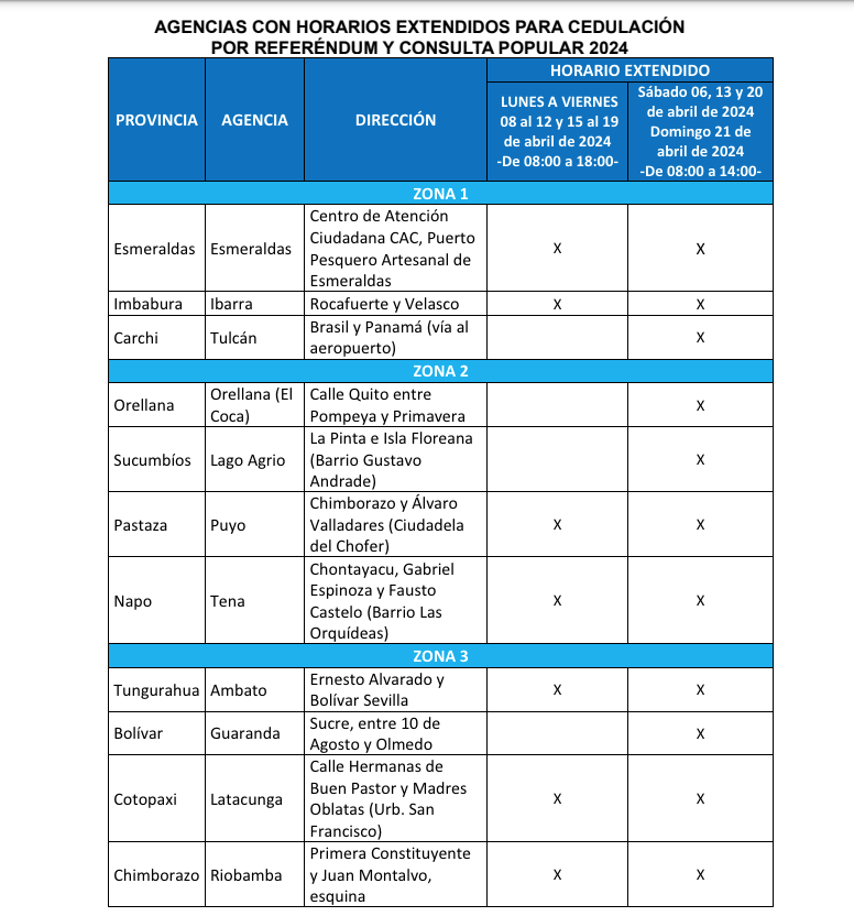 A propósito de la Consulta Popular y el Referéndum que se realizará el 21 de abril de 2024 en Ecuador, varias agencias del Registro Civil a nivel nacional ampliarán sus jornadas de atención de acuerdo a un calendario que ya fue presentado.