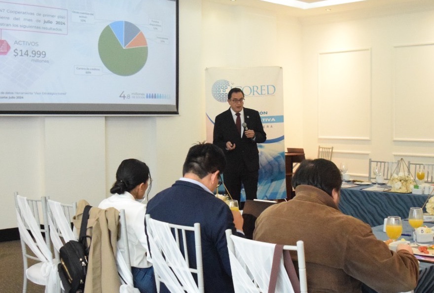 En su exposición, resaltó la evolución de las 47 cooperativas que integran la red y su impacto en el Sector Financiero Popular y Solidario.