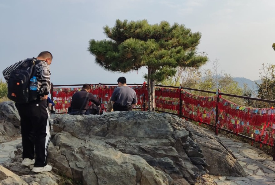 En la cima puedes encontrar espacios para tomarse fotos como la enorme roca con el nombre de la Colina Perfumada en chino y otra con los caracteres de fortuna. Además puedes encontrar unos recuerdos de color rojo para colocar tus sueños más deseados y colgarlos en unas barandas.