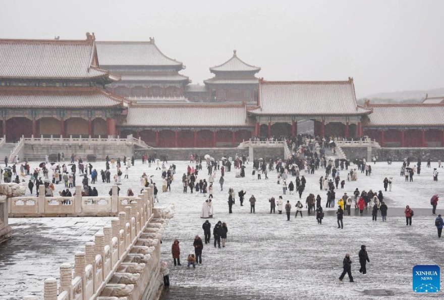 Beijing se cubrió de nieve desde la mañana del viernes, 12 de diciembre de 2025. Finos copos cayeron a partir de las 10:00 y llenaron las calles y edificaciones de la capital de China.