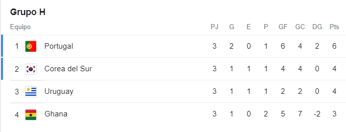 Uruguay venció por dos a cero a Ghana, pero no le alcanzó para clasificarse a la siguiente ronda, pues dependía de que Portugal saque un buen resultado ante Corea del Sur. Algo que no se dio, pues los asiáticos vencieron a los lusos por dos a uno.
