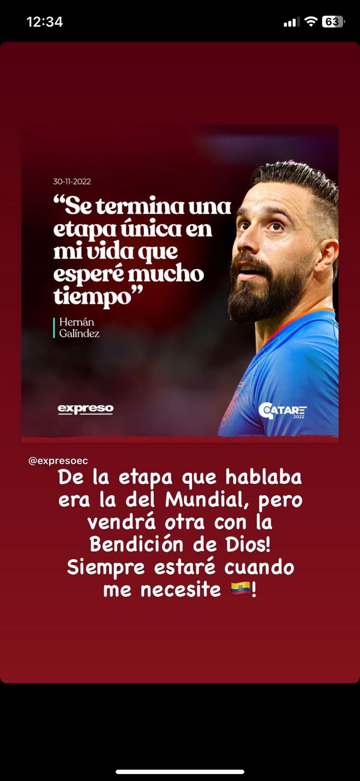 Hernán Galíndez, portero titular de la Selección de Ecuador, tuvo que usar sus redes sociales para aclarar algo que dijo ante los medios de comunicación, declaración en las que anunció que “se termina una etapa única” su vida como profesional por la que esperó “mucho tiempo”.