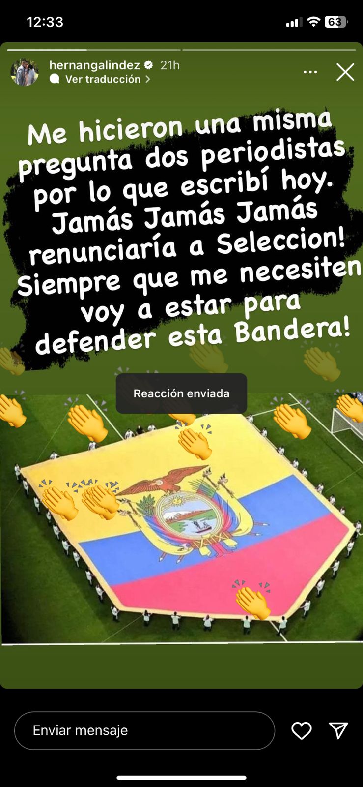 “Jamás renunciaría a la Selección. Siempre que me necesiten voy a estar para defender esta bandera”, escribió Galíndez en su cuenta de Instagram.