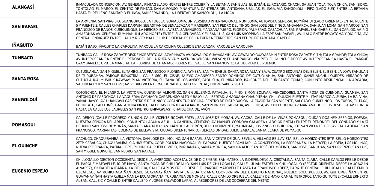 La Empresa Eléctrica Quito presentó el calendario de suspensión de energía la noche del miércoles 18 y jueves 19 de septiembre en la capital.