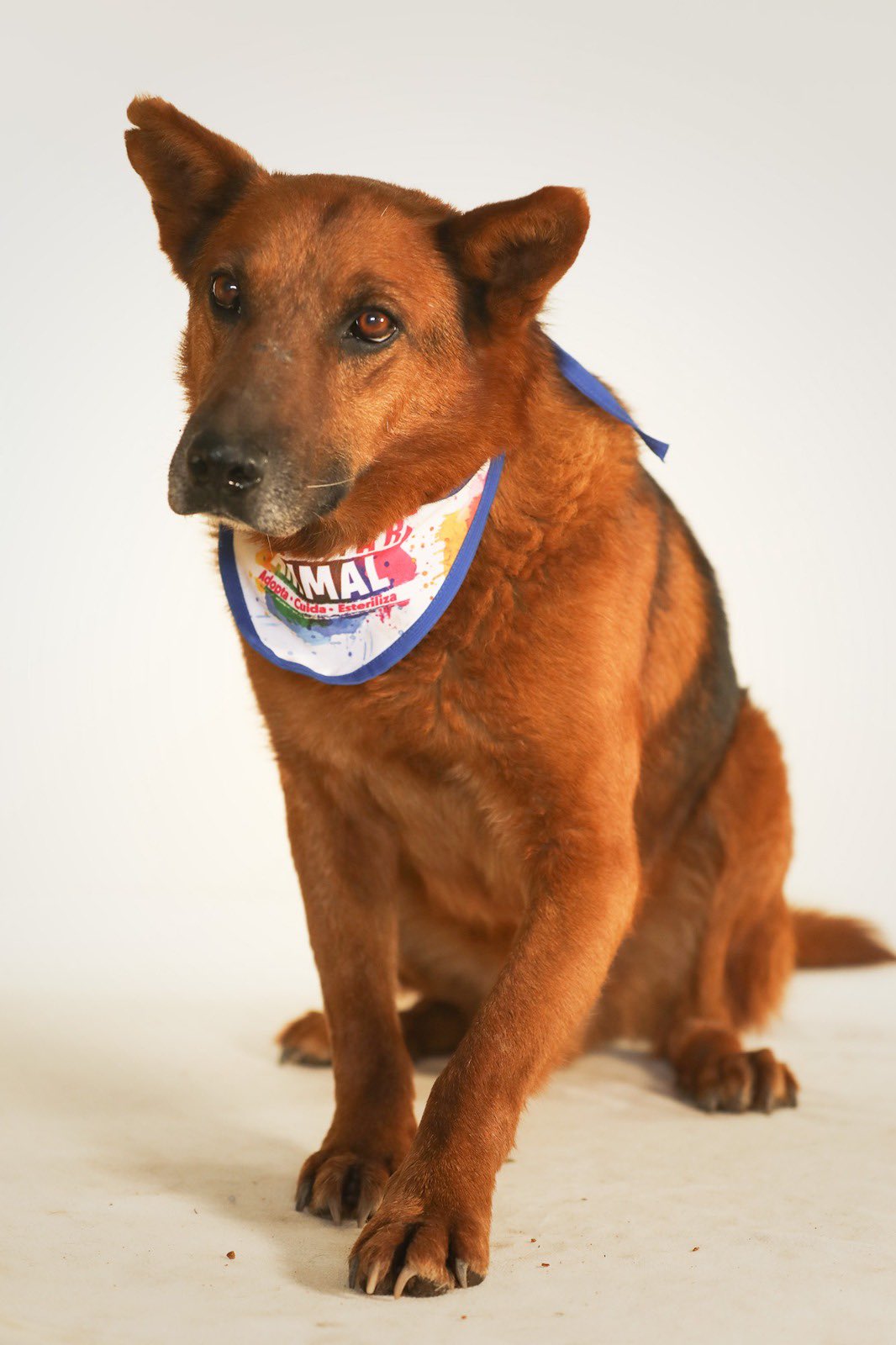 Fue abandonado, pero es muy cariñoso. El color de su pelaje es naranja. Ya fue esterilizado y vacunado.