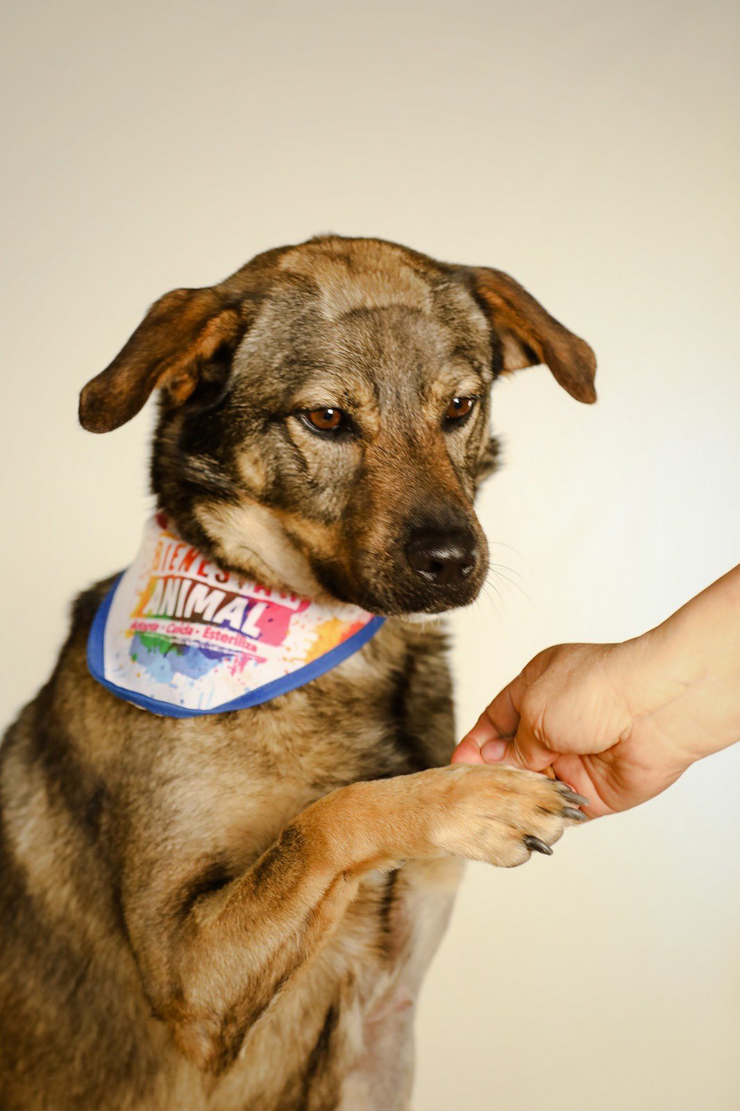Es un perrito café con manchas oscuras. Está esterilizado, vacunado y completamente sano.
