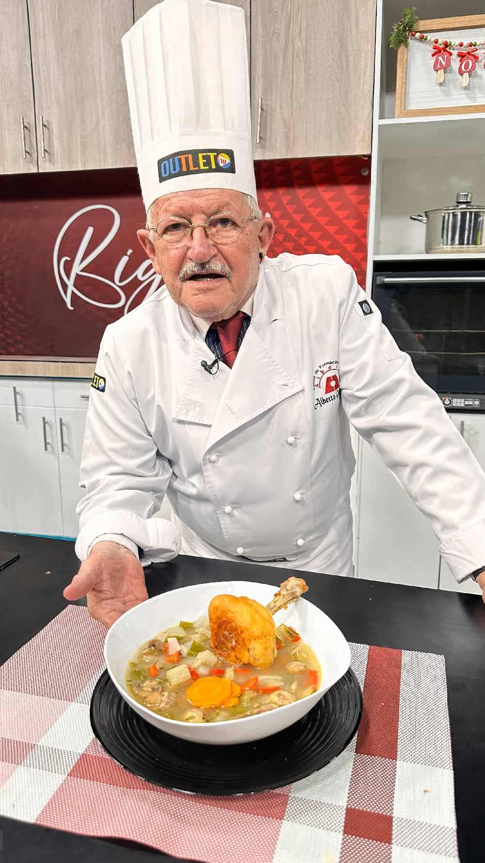 Se encuentran datos en ciertos libros y apuntes de la gastronomía antigua, que esta sopa nace del ingenio de las cocineras antiguas, quienes recogían la masa sobrante de los buñuelos que se servían como postre en la cena y procedían a cubrir las piernas de pollo y les doraban en aceite no muy cliente, para luego colocar en la sopa y dar un aspecto de mayor abundancia en la cena.